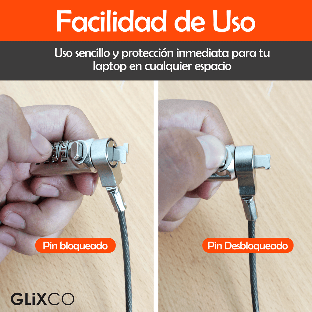 Cable Espiral de Seguridad para Laptop con Clave 4 dígitos / Ranura Standard Kensington
