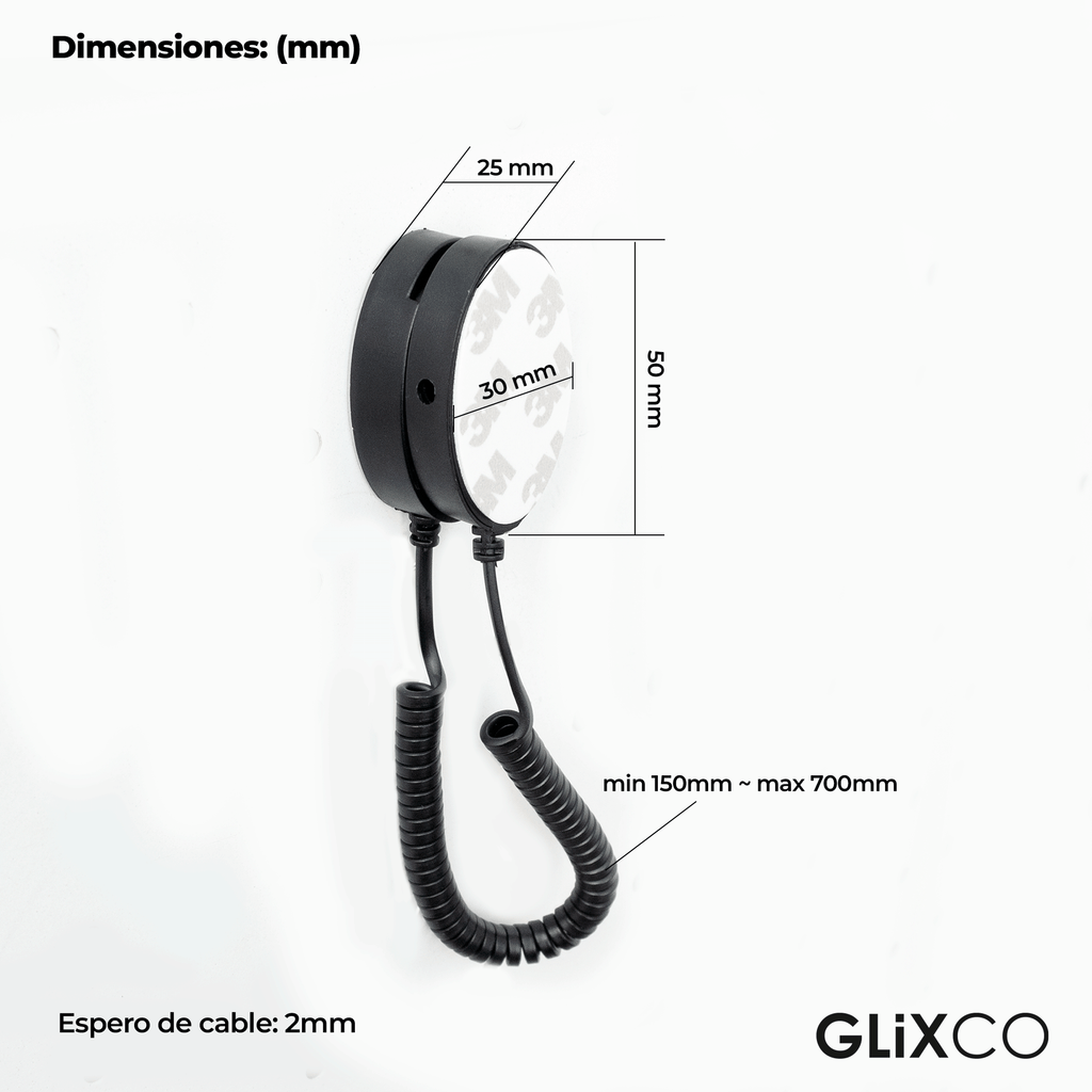 Cable Retráctil Imantado para Control Remoto / Soporte Magnético Antipérdida / Fijación en pared / Largo Max 70cm