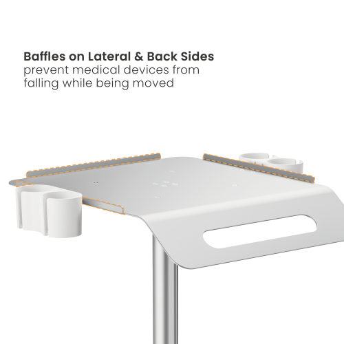 MED930 está diseñado para facilitar el cuidado de los pacientes, ya que ofrece una solución de tratamiento compatible con máquinas ultrasónicas. Gracias a los deflectores laterales y traseros, se evita que los dispositivos médicos se caigan durante su uso. Se incluyen soportes para sondas ultrasónicas y acopladores para mantener la mesa ordenada, y una cesta ajustable en altura con ganchos para organizar los cables colgantes. Las ruedas silenciosas con una base estable en forma de estrella garantizan una movilidad segura, lo que permite disfrutar de un entorno de recuperación tranquilo y de la comodidad de poder moverse libremente.