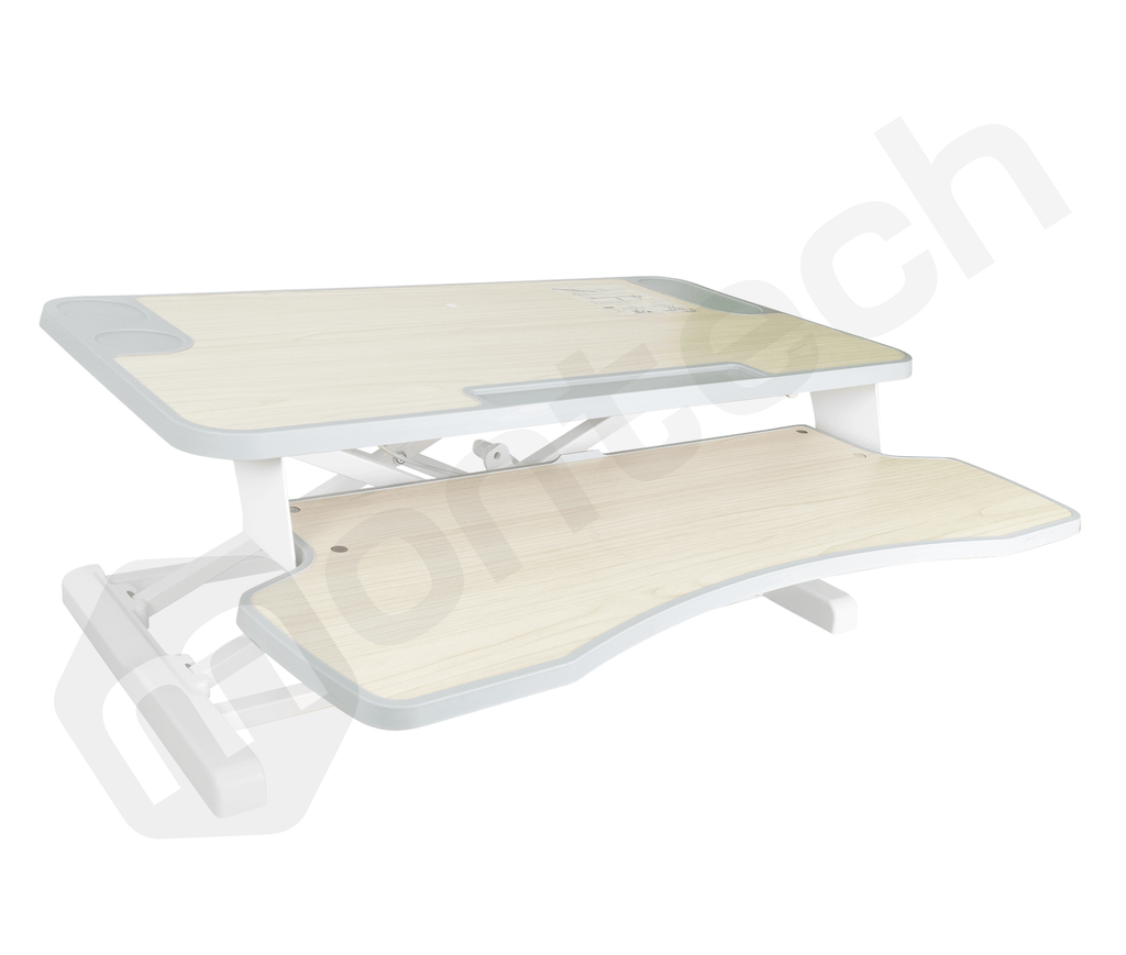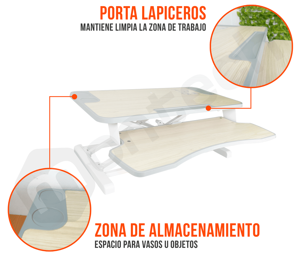 Trabaja de pie o sentado con el escritorio de sobremesa ajustable de 110~505mm. Cambia fácilmente de posición con el resorte de gas y la palanca ajustable. Diseño ergonómico con espacio para accesorios y protección antideslizante. ¡Aumenta tu productividad y bienestar con este convertidor de escritorio!