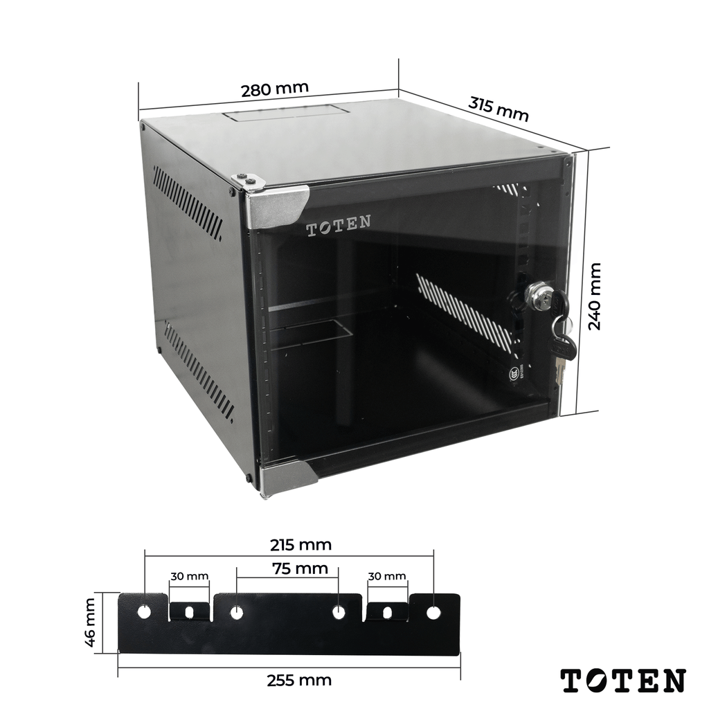 Gabinete de pared para Servidor - Modelo Desarmado / 4RU/ 31.5x28x24cm (largo, ancho y altura)
