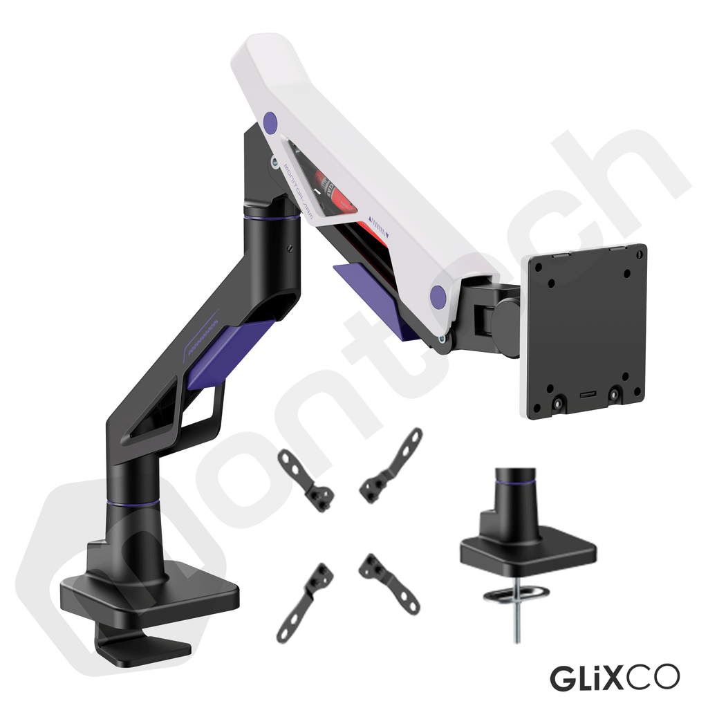 El brazo para monitor gaming de alta resistencia está diseñado para monitores ultraanchos de hasta 57" y 30kg , satisfaciendo la creciente demanda de configuraciones gaming de alto rendimiento. Su innovadora estructura de cabezal, con rodamiento unidireccional integrado, garantiza ajustes de inclinación sin fricción para pantallas pesadas. Su diseño futurista se integra a la perfección con la estética gaming, mientras que la instalación superior simplifica el proceso de instalación al eliminar la necesidad de trabajar debajo de escritorios. Una solución perfecta para un soporte de monitor estable y elegante en entornos gaming.