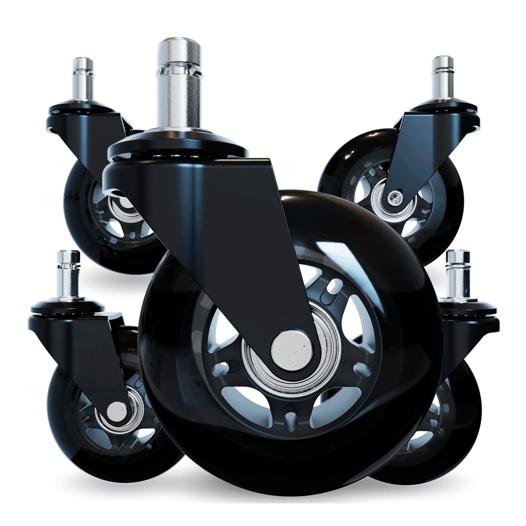Estilo de diseño perfecto: nuestras ruedas para silla de oficina cuentan con un diseño mejorado de una sola rueda en lugar de una configuración de doble fila. El diseño de una sola rueda no solo mejora el atractivo estético de la silla de oficina, sino que también proporciona una distribución más uniforme del peso en cada rueda, mejorando así la estabilidad de la silla. Es una opción ideal para sillas de oficina.