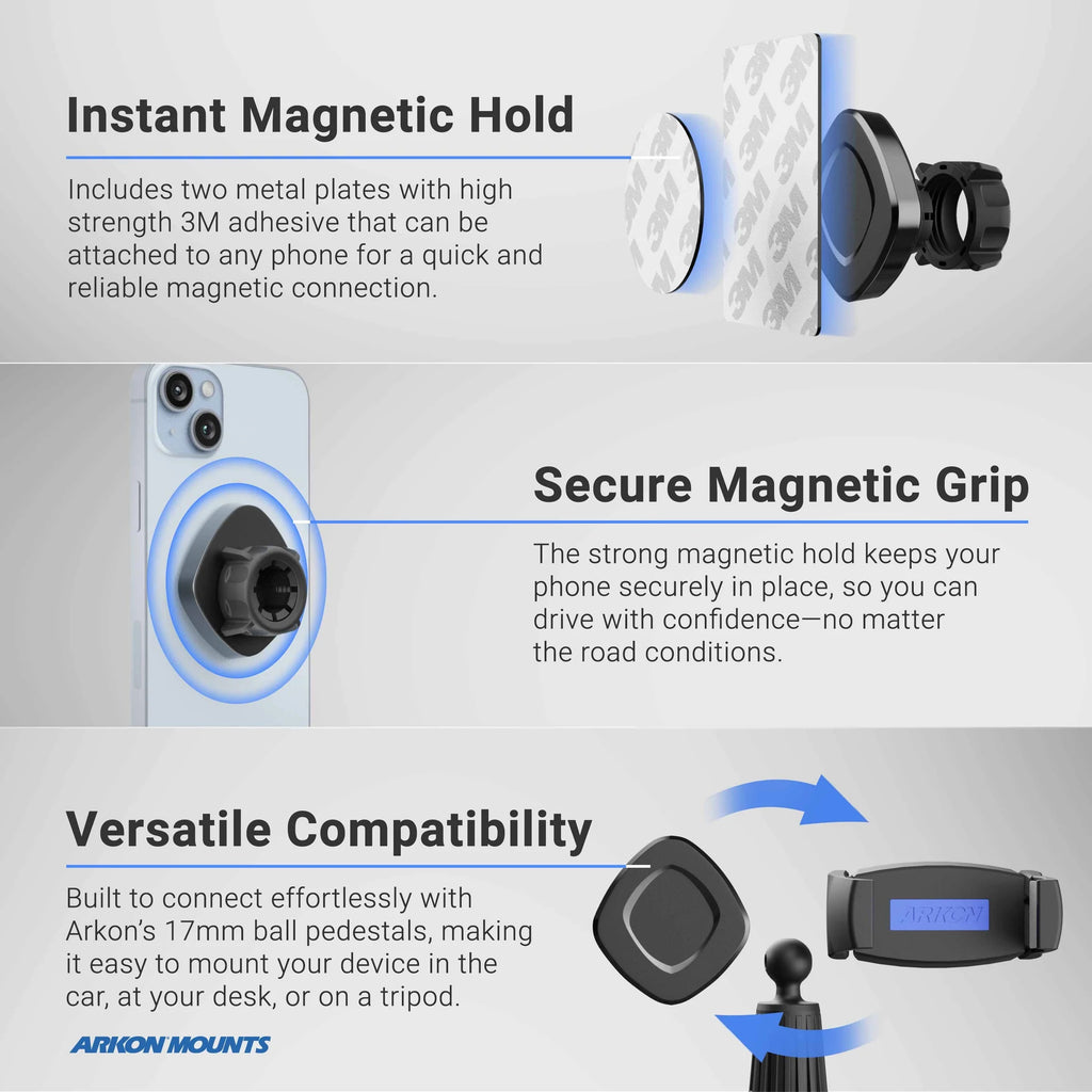 El soporte magnético para teléfono con ventosa para coche está diseñado para todo tipo de smartphones, incluyendo iPhone, Note y más. Gracias a su ventosa adhesiva, es perfecto para montarlo en el salpicadero o el parabrisas del vehículo . El soporte se ajusta fácilmente al ángulo deseado gracias a su brazo giratorio de 360 grados. Es fácil de instalar y muy resistente, lo que lo convierte en una excelente alternativa para quienes prefieren mantener el teléfono a la altura de los ojos mientras conducen sin obstruir la visión.