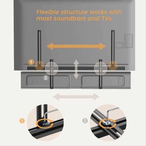 ● Soporte ajustable: se adapta a barras de sonido de diferentes tamaños
