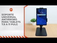 Gracias a sus garras de diseño innovador es compatible con la mayoría de las tabletas de 7,9"-10.5", incluidos el iPad de Apple y el Samsung Galaxy Tablet. Tanto la vista horizontal y vertical, así como la función de inclinación, están disponibles con el fin de proporcionar una mejor experiencia de uso del cliente. Las almohadillas de silicona y EVA proporcionan una protección completa para el preciado dispositivo. El diseño con cerradura y tornillo antirrobo impide el robo y la extracción no deseada. La gestión de cables interna protege los cables y crea un aspecto profesional para el mostrador de tabletas.